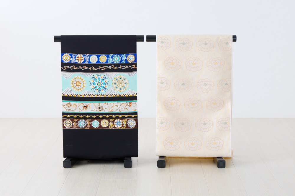 袋状に織られたので袋帯という名となり、格の高い柄の帯は礼装用に、逆に格の軽い柄の帯はお洒落用にと幅広い用途で用いられます。