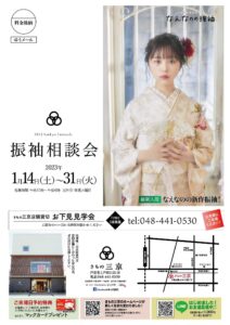 1月14日(土)〜31日(火)の期間、きもの三京2階振袖展示ルームで