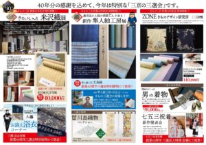 三選会の案内状をご希望の方はDM・お電話等でお気軽にきもの三京まで御連絡下さい。
