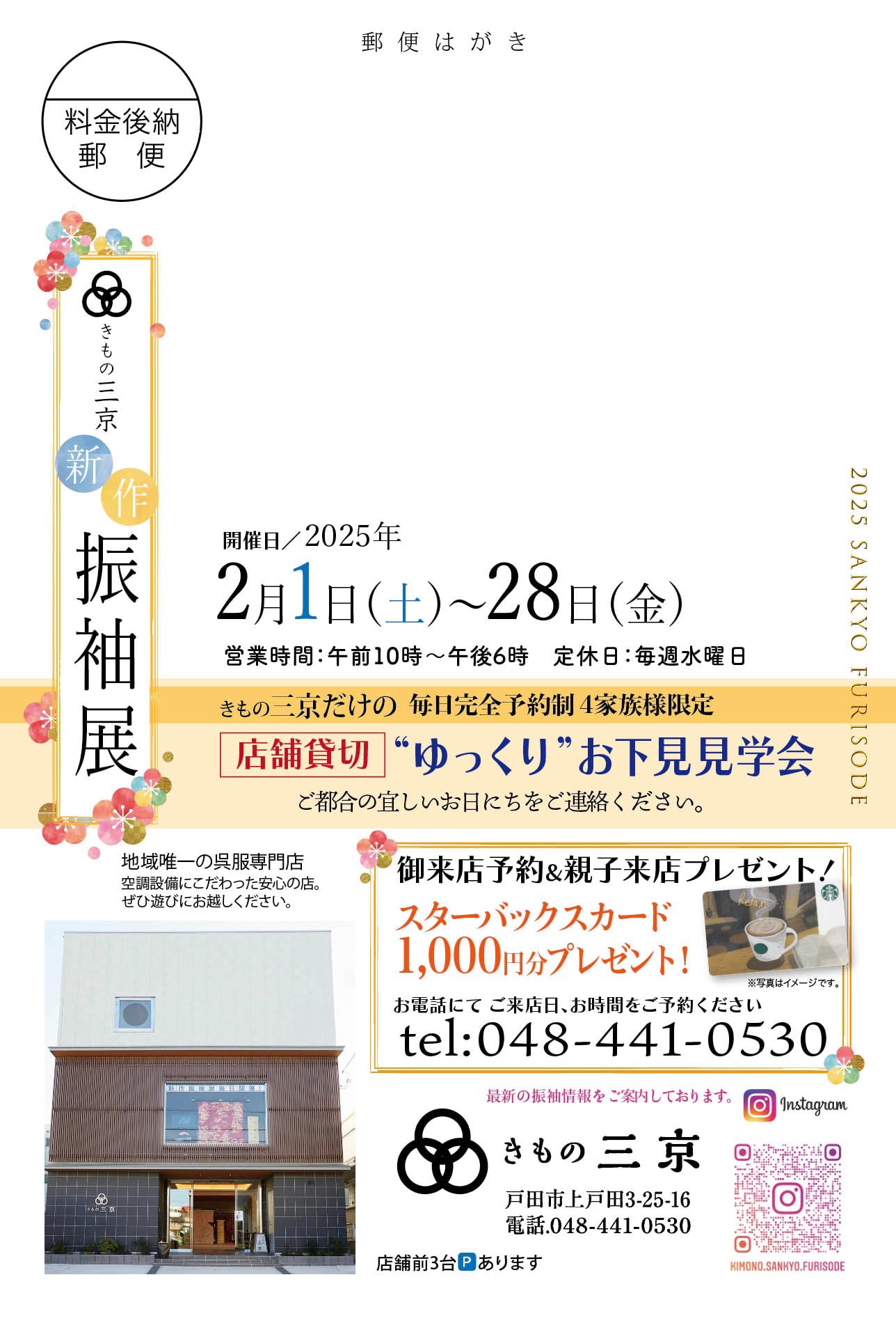 2025/01/30 2月1日(土)〜28日(金)の期間、 『きもの三京レンタル・購入振袖相談会』を開催いたします。 王道の人気柄「古典柄振袖」を中心に今シーズン大人気の「くすみ系振袖」や「レトロ振袖」など総点300枚の振袖をレンタル・ご購入いただけます♪ また、ママ振袖・姉振袖のリメイク相談も承っておりますのでお気軽にお問合せ下さい。 素敵な振袖がたくさんあるのでお時間に余裕をもってお電話かメールでの御来店予約をお待ちしております♪ 振袖,レンタル,千總,戸田市,蕨市,さいたま市,川口市 振袖レンタル,レンタル振袖,戸田,蕨,さいたま,川口