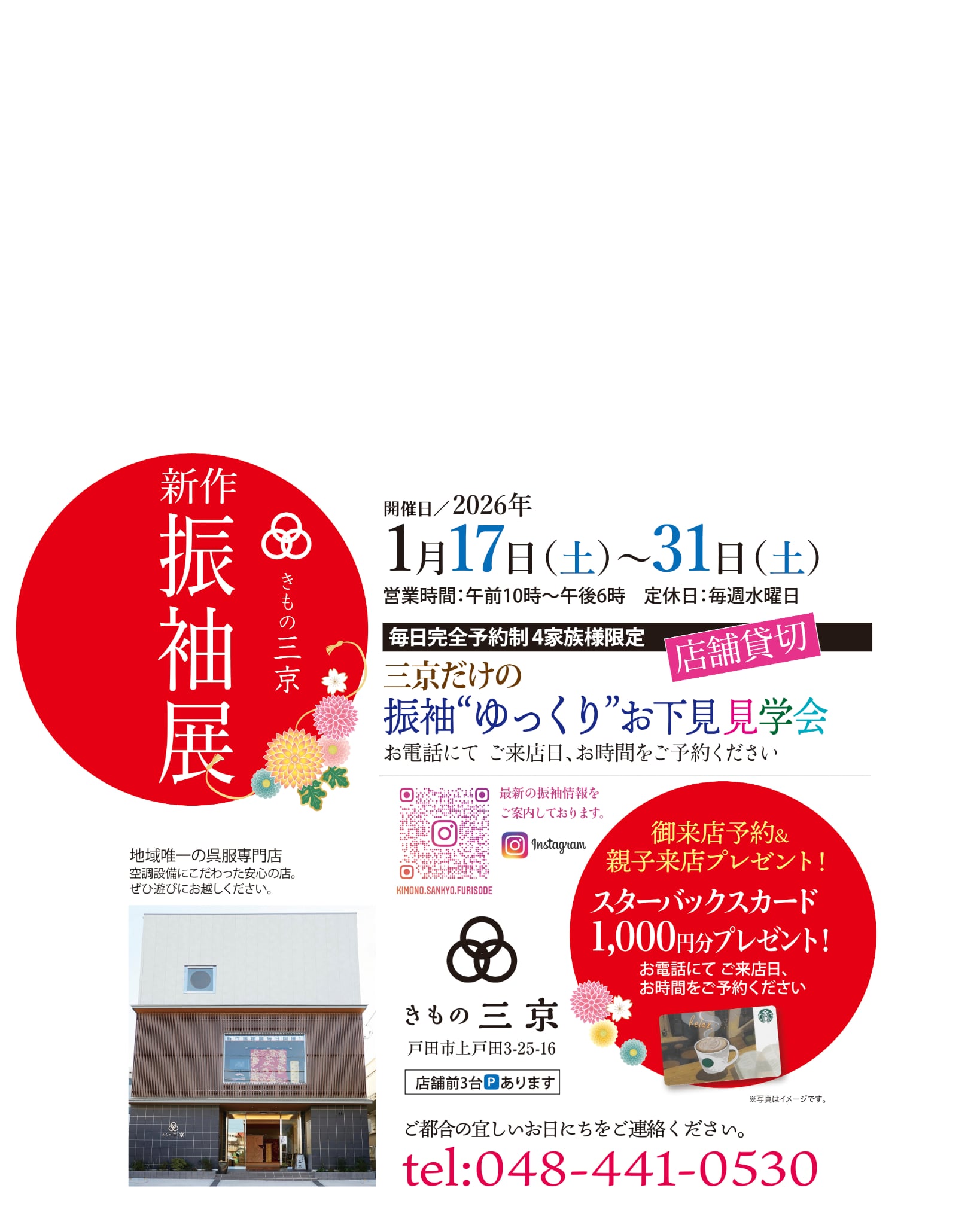 1月17(土)〜31日(土)の期間、『きもの三京レンタル・購入振袖相談会』を開催いたします。